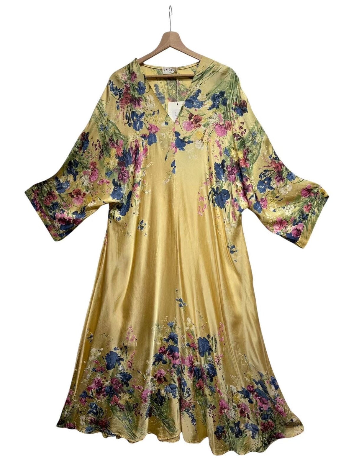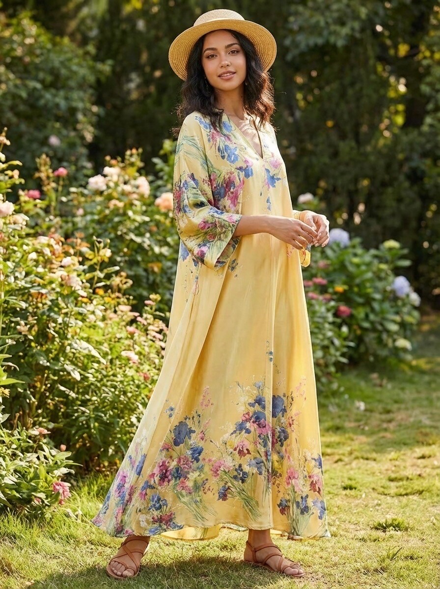 V-Ringad Långklänning med fickor- Finja Gul